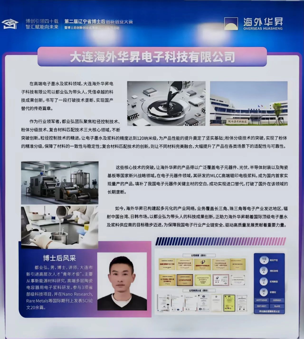 通過產學研不斷深耕,海外華昇已獲得知識產權共計100項,其中授權發明專利22項、實用新型17項、軟件著作權35項,注冊商標3項。同時,海外華昇還通過了ISO9001/ISO14001/RoHS/IATF16949認證,海外華昇也是國內首家通過汽車行業質量管理體系IATF16949認證的電子漿料企業。